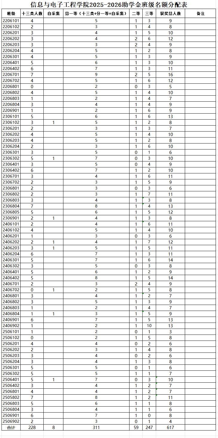 必赢线路检测3003no12025-2026学年国家助学金班级名额分配表