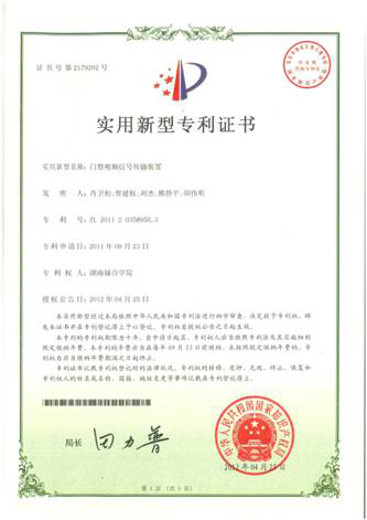 刘 杰、熊静平、胡伟明同学获得专利——门禁视频信号传输装置