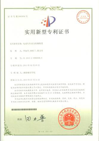 黄文帝同学获得专利——电动汽车动力检测装置