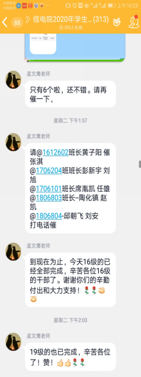 必赢线路检测3003no1的疫情日报工作每日顺利完成,每天按照班主任、辅导员包干制度在学生干部群、班级微信群提醒同学们按时填报,确保落实全院每一位学生健康状况的汇报。为深入班级,了解学生在家上网课的情况,推出了相关的问卷调查,积极回应学生反馈的问题,为我院学生提供更稳定的线上学习环境。同时 组织各个班级定期及时地召开线上会议,学习上级下发的有关文件精神,提升学生的政治思想和道德理念。加强党、团组织建设工作,积极做好学生党、团员的培养。积极改进和完善班级制度,辅助我院学子成长成才。