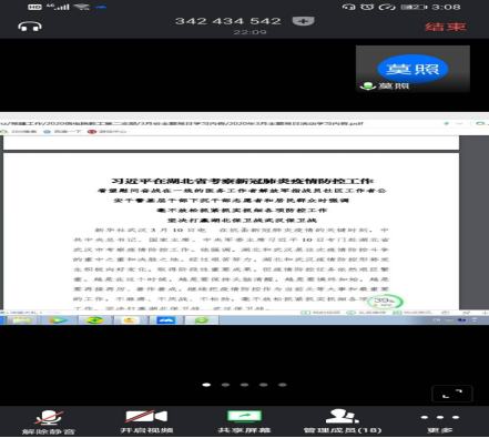 首先,各支部组织学习了习近平总书记在统筹推荐新冠肺炎疫情防控和经济社会发展工作部署会议上的讲话。随后,各支部书记向各位党员介绍了党中央这段时间以来的疫情工作部署以及疫情防控战略策略。各支部党员认真学习讲话内容,并表示坚决贯彻党中央提出的“坚定信心、同舟共济,科学防治、精准施策”的总要求。