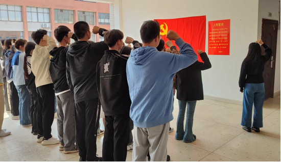 2023年3月15日,必赢线路检测3003no1预备党员入党宣誓仪式在电信楼举行。学院党委书记邓中日,学生党支部书记钟瑜、郭昊晴、彭秀丽,27名学生预备党员,各学生党支部党员代表参加仪式。
