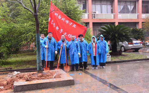 3月19上午10点,学院党委书记邓中日、副院长肖卫初带领师生10余人在学校电信楼南面、西面开展学雷锋义务植树活动。