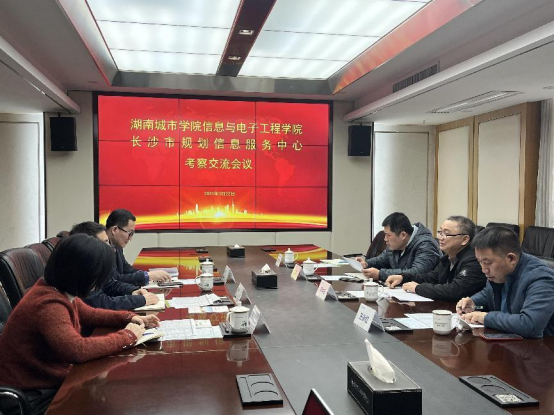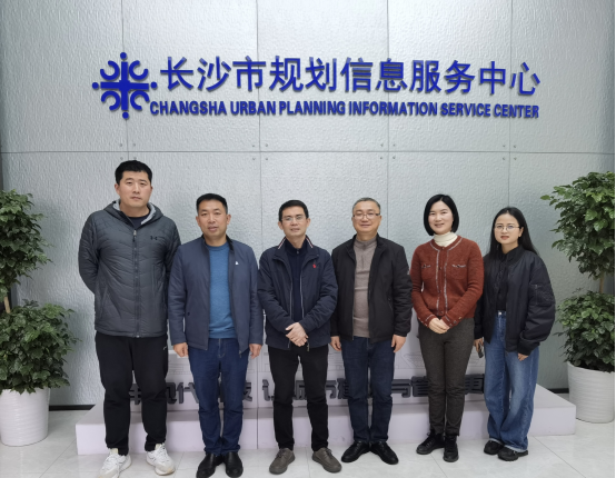 随后,邓中日一行走访了长沙市规划信息服务中心。座谈会上,长沙市规划信息服务中心总工程师唐群峰校友介绍了中心发展情况、技术研发成果、科研成果及校友工作情况。邓中日介绍了来访目的和学院基本情况,希望校友常回母校看看,多选用母校毕业生。长沙市规划信息服务中心主任助理苏富平提出了有关加强校企合作和人才培养的建议。双方就举办学科竞赛、开展实习实训、畅通人才供需通道等问题进行了深入交流。会后,唐群峰带领邓中日一行参观了长沙市规划信息服务中心各工作区域。