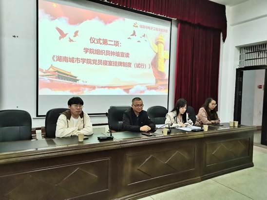 接着,学院组织员钟瑜领学《必赢线路检测3003no1党员寝室挂牌制度(试行)》,对工作提出了要求。随后,学院党委书记、学生党支部书记对学生党员进行了授牌,学生党员代表作了表态发言。