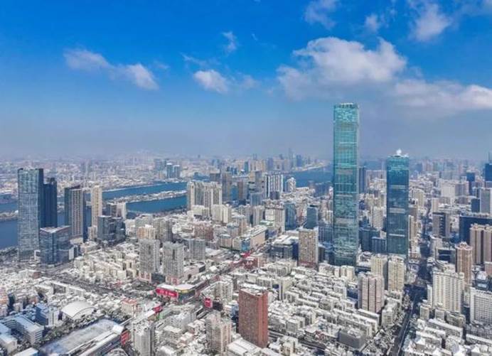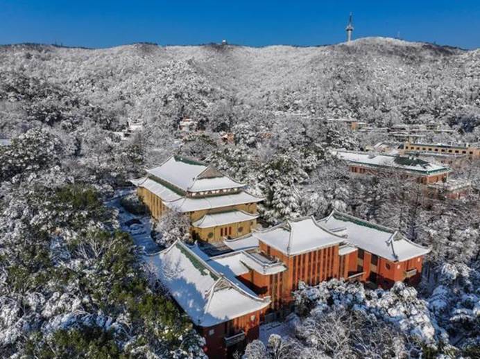 (1月23日,银装素裹的岳麓山与湖南大学雪景。湖南日报全媒体记者 郭立亮 摄)